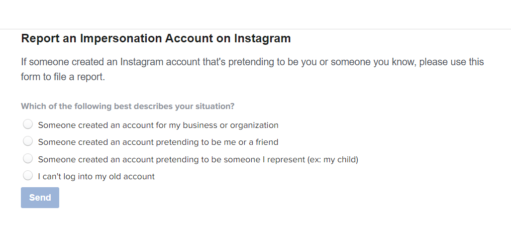Step 3: Choose “Someone created an account pretending to be me or a friend” and then “Yes, I am the person being impersonated”